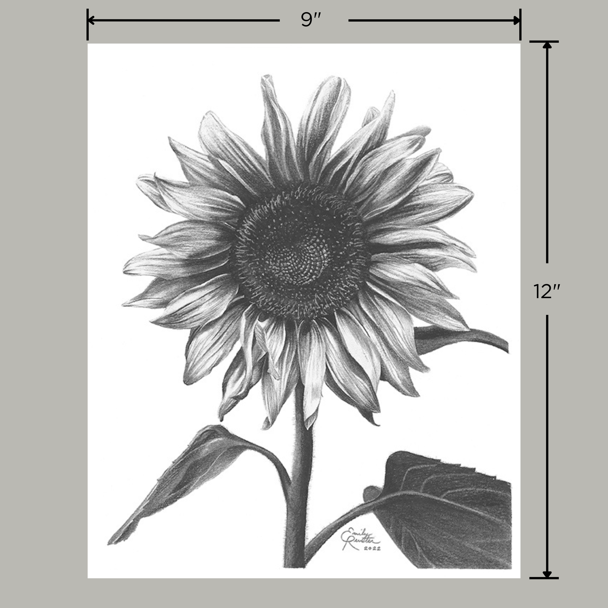 This sunflower was the first one grown on our little hobby farm, from seeds saved from my grandparents farm. Charcoal and graphite were used to achieve the multiple textures of this beautiful flower.